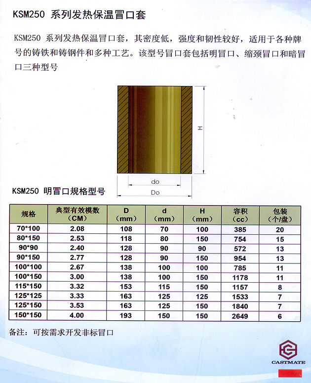 產(chǎn)品類別: 發(fā)熱保溫冒口套—KSM250系列 >> KSM250 明冒口