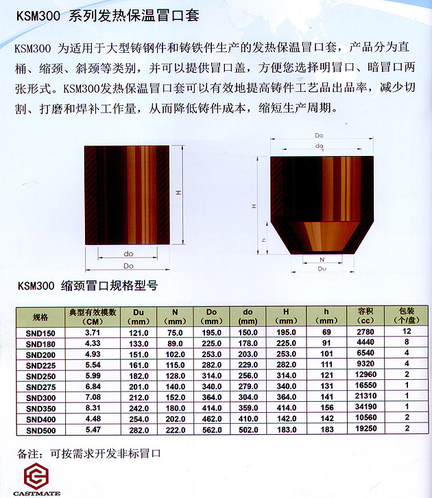 產(chǎn)品類別: 發(fā)熱保溫冒口套—KSM300系列 >> KSM300 縮頸冒口